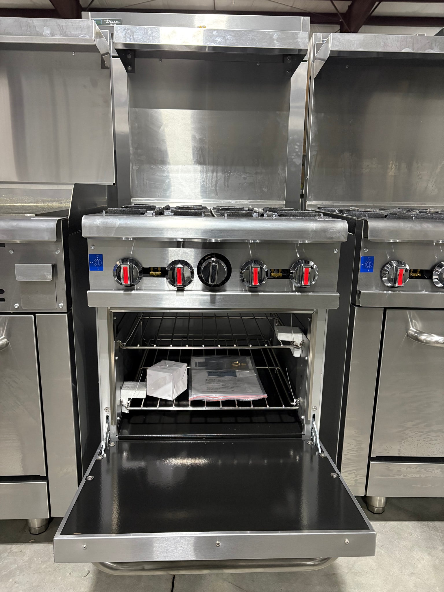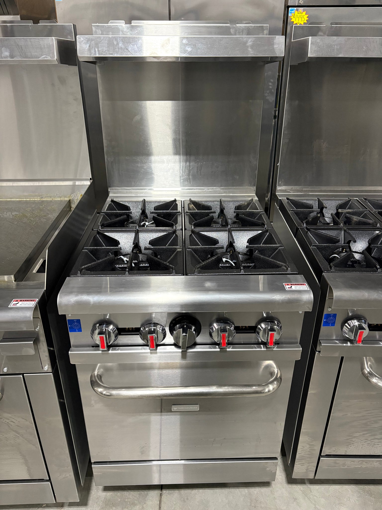 24" stove with 4 burners.  We Have Natural Gas Available.  It comes with a propane conversion kit.